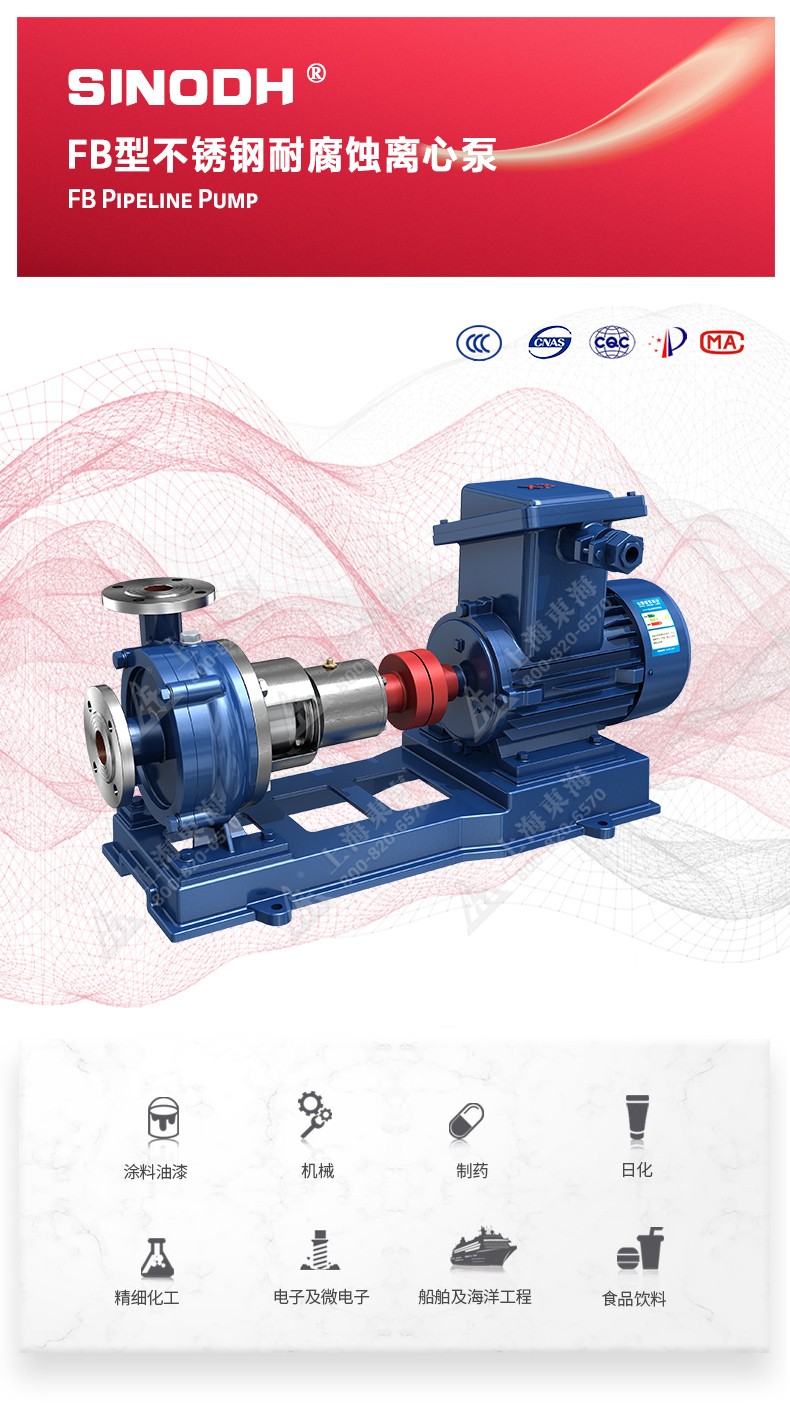 FB型不锈钢单级单吸悬臂式耐腐蚀离心泵,为荣耀体育在线登录入口,首页自主研发生产。本系列产品适用于输送不含固体颗粒,有腐蚀性液体。被输送介质温度为-20℃~200℃,泵的进口压力不能大于0.2MPa,广泛用于石油、化工、冶金、合成纤维、制药、食品、酿造等工业部门,也可供工矿、企业及城市供水、排水之用。
