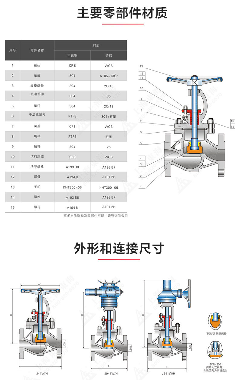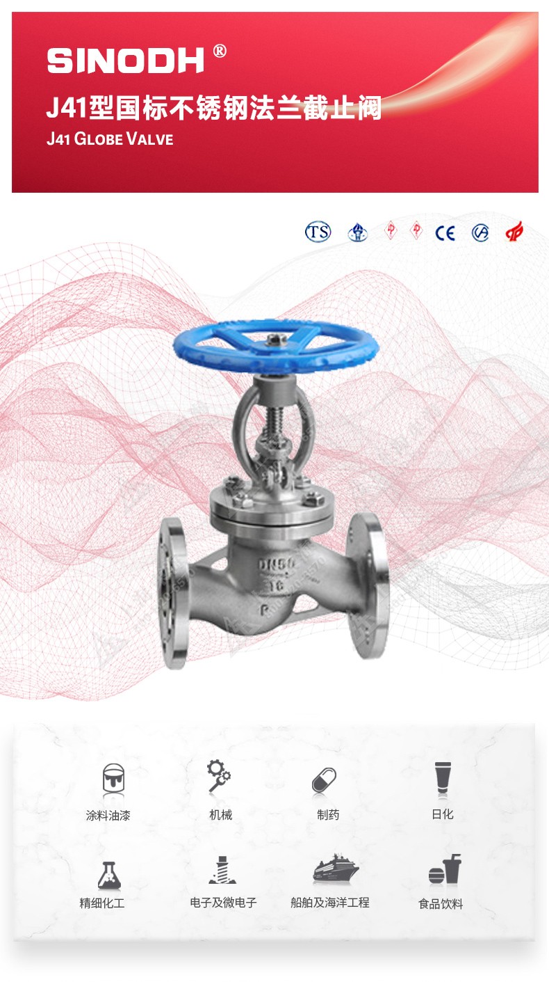 J41型国标不锈钢法兰截止阀, 为荣耀体育在线登录入口,首页自主研发生产。本产品设计制造标准符合GB/T12235-89标准其启闭件是圆柱形的阀瓣,密封面呈平面或锥面,阀瓣沿流体的中心线作直线运动。国标截止阀只适用于全开和全关,一般不用来调节流量,定做时允许作调节和节流。